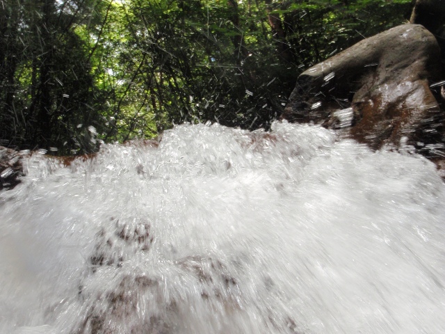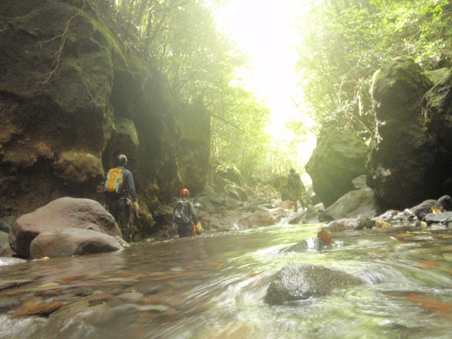 思ったより、霧島山系の川は冷たいようです。しっかりとした、服装で寒くなければ楽しく沢登が楽しめます。途中泳げるところ、小滝をよじ登ったり、飛び込みなどもできて楽しいです。足場は悪いところもありますので、気を付けて歩きましょう。かなり満喫できます。