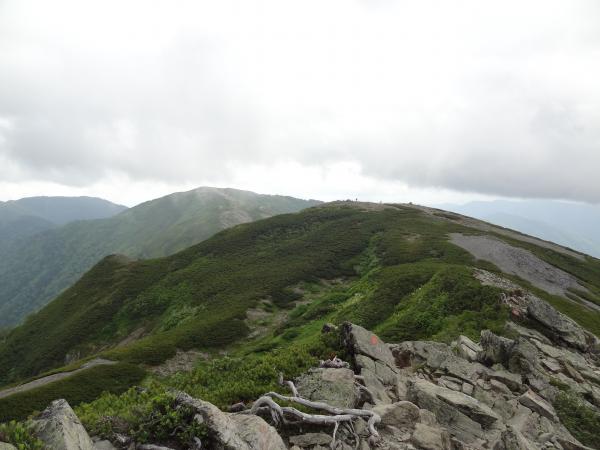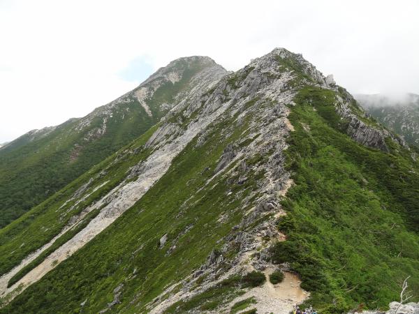 残念です。山頂から一度下り、蝶ヶ岳へ。途中、山頂と思った蝶槍を通過