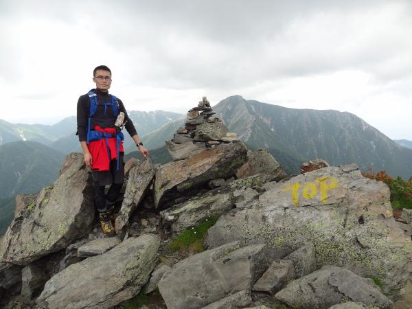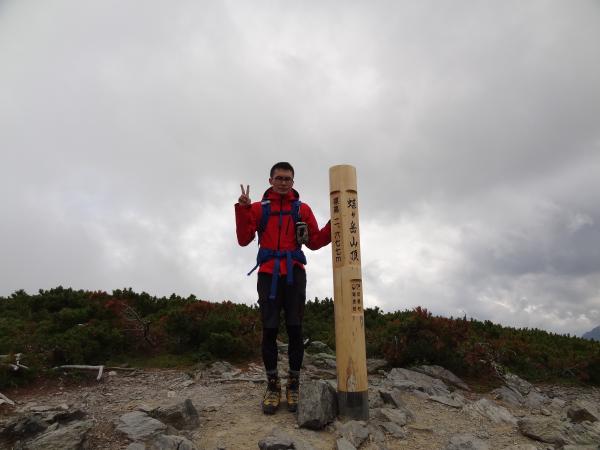 山頂からは絶景が待っていると思いましたが・・・槍・穂高連峰は雲の中・・・