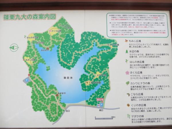 - 南口駐車場(10分)マダケの林(10分)こなら広場(40分)さくら広場(15分)北口(5分)南口駐車場 *歩行時間のみ