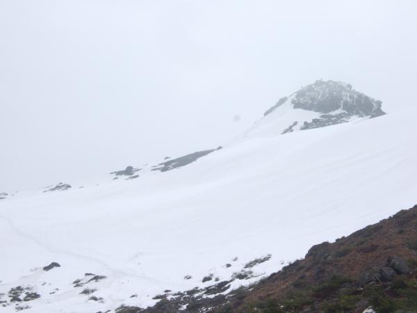 休憩をとりながら暫く歩くと、くろがね小屋へ着き、アイゼンとピッケルの装備を整えます。そこから視界が悪くなり、周りが見えないくらいになる時もありましたが、踏み跡はしっかりとついていて、念のためGPSを使用しましたが、迷うことはなかったです。