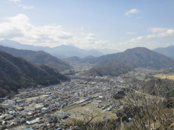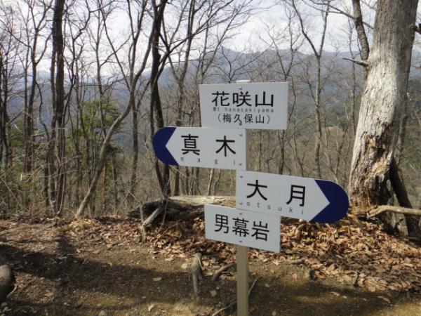 - JR大月駅→(15分)→岩殿山登山口→(30分)→岩殿山山頂→(50分)→稚児落し→(35分)→浅利地区→(20分)→花咲山登山口→(30分)→サス平→(30分)→花咲山山頂→(35分)→真木地区→(50分)→JR初狩駅