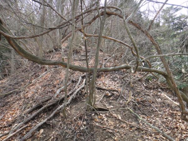 浅利地区→花咲山 ・・・ 民家の間にある路地から入山。斜度がきつい上に土が滑る。道迷い注意