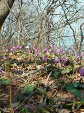 道中、ミスミソウ、カタクリの群生地、などなど、春の花が沢山咲いていました。 時間の経つのを忘れる程の美しさでした。トレイルの真ん中にも花が咲いているため、歩く際は、踏んでしまわない様、注意が必要です。