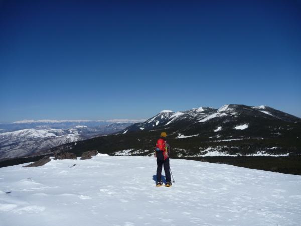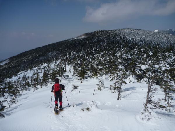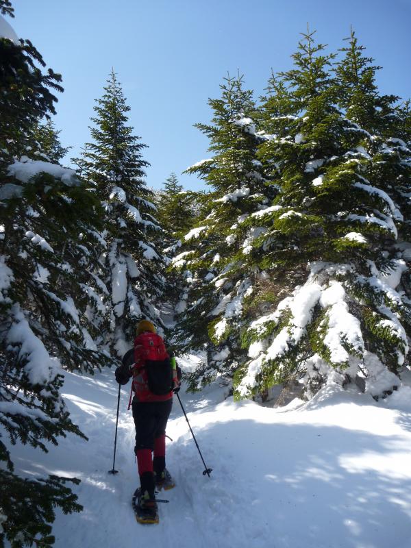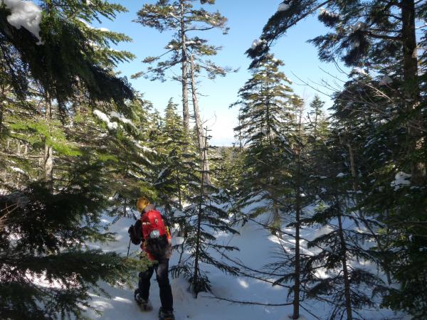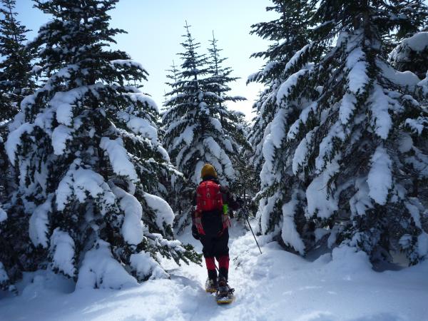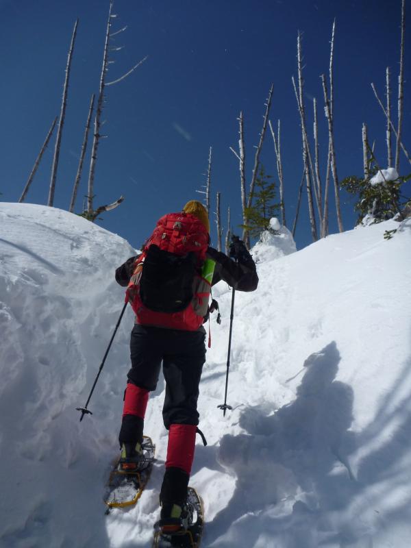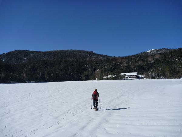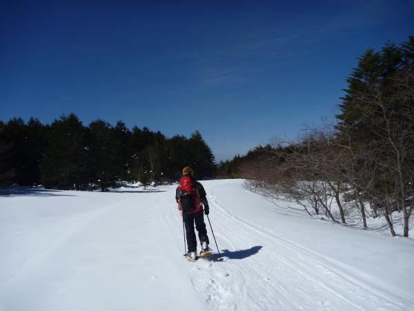 - 張り切ってスノーシューを装着するも、沈みこむところもなく、
