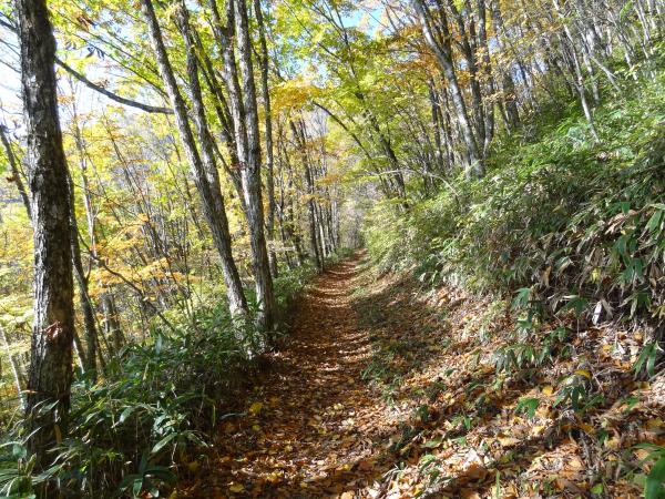 最初はゆるやかな樹林帯の中の登りが続き、歩きやすいです。