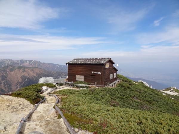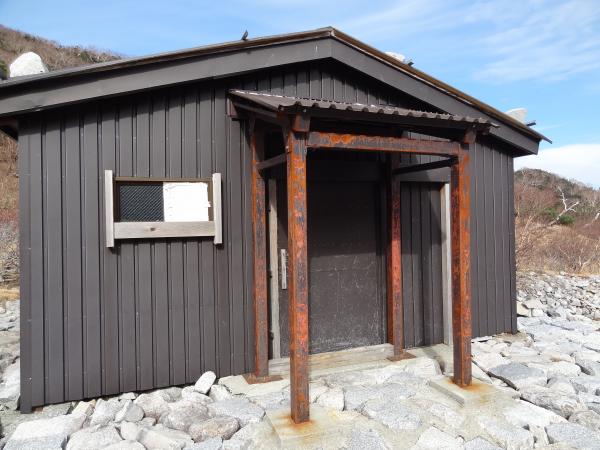 少しすると池山小屋に到着。きれいな無人小屋です。