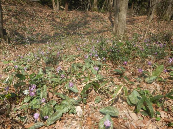 登山道途中の二重堀切のカタクリは今が見頃です。