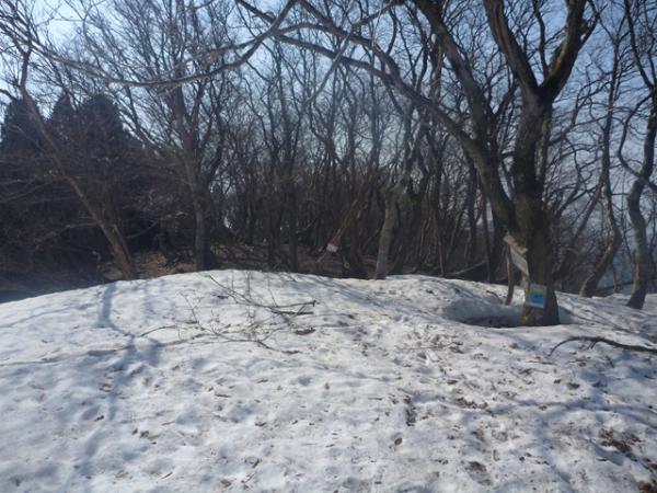 雪が積もっていましたが山頂の部分だけでアイゼンなどは必要ありません