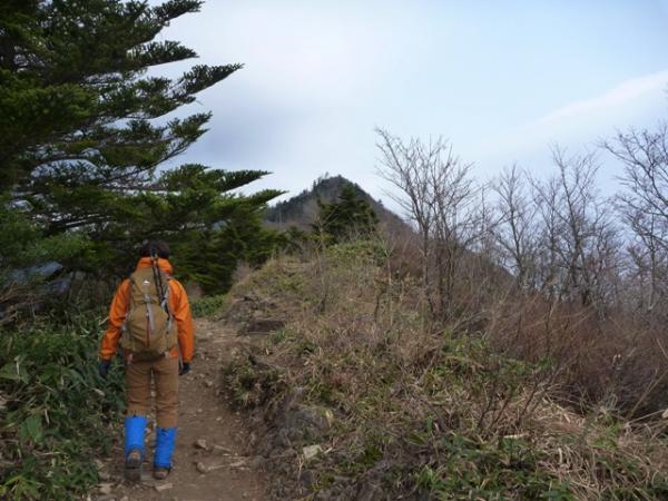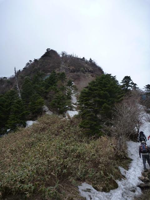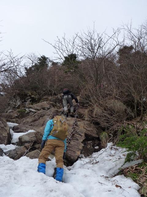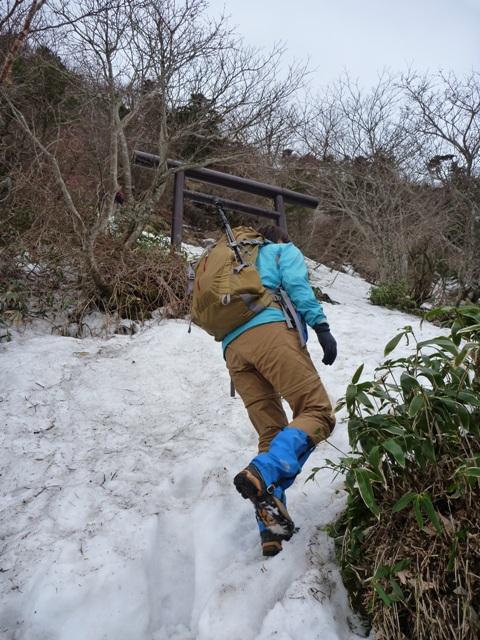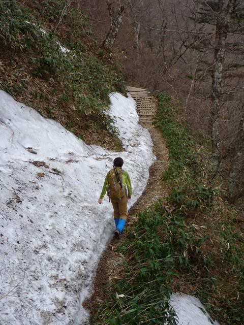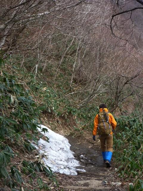 - 駐車場からさっと登るつもりでいましたが、思った以上に残雪が多く、