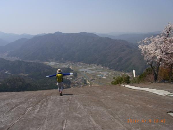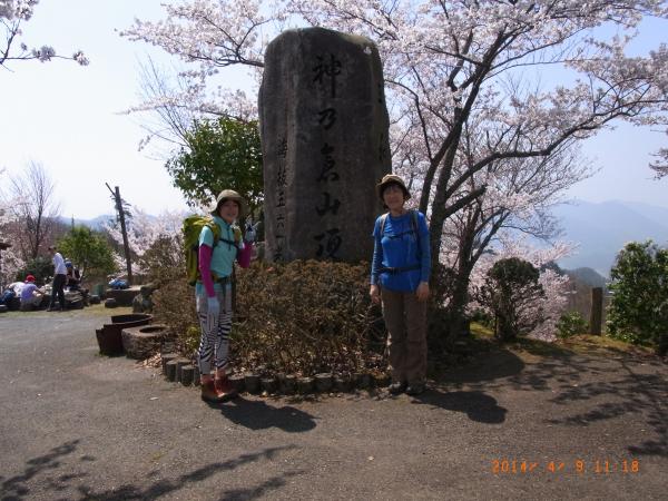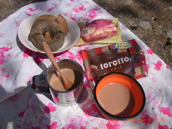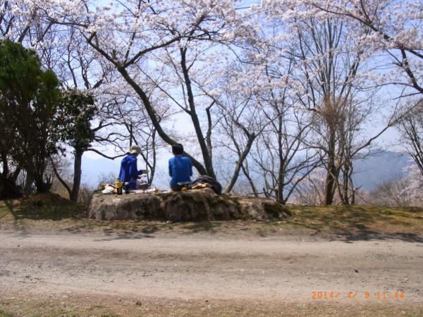 山頂で桜の木の下で、 花見をして、のんびりご飯とお茶タイムをして、テクテク下山!