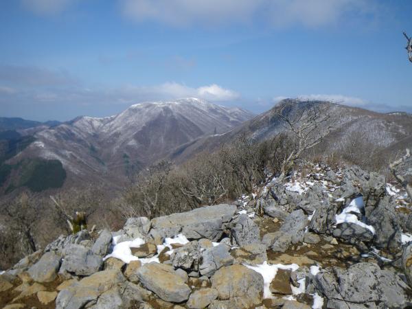 藤原岳(ふじわらだけ・1140m)は日本300名山・関西100名山の一つで、福寿草の群生があり、花の100名山としても知られています。三重県側は鉱山となっており、石灰石が採掘されていて、崩れた山容になっていて、わかりやすい。残雪が多い山ですが、3月頃から福寿草・節分草が花を咲かせます。