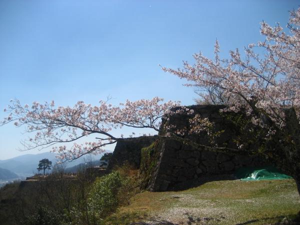 桜の立雲峡と朝来山 天空の城・竹田城跡