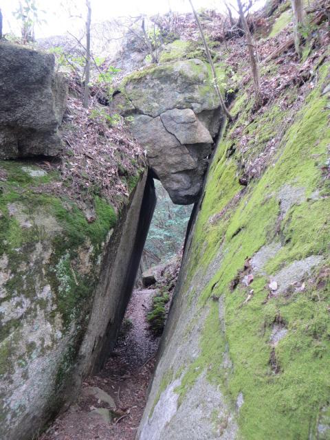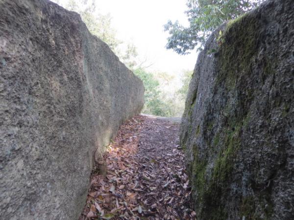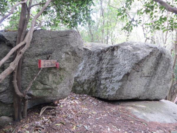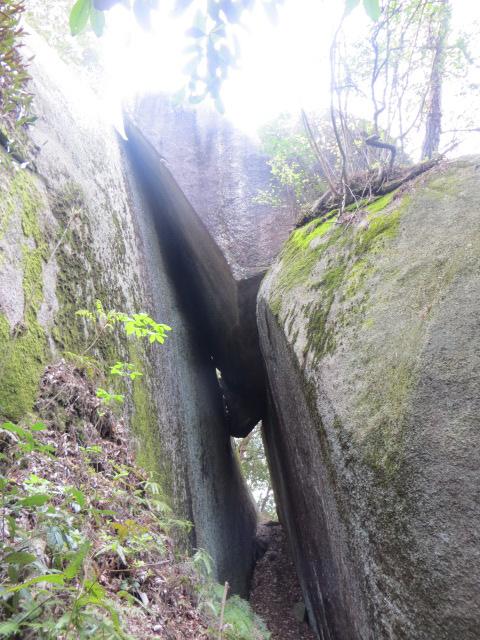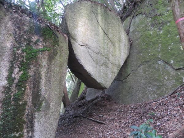 岩石山から赤村へのルートの上部は、滑りやすい急な道です。ロープや注意を喚起する看板が設置されていますが、巨石群付近は狭い崖になっている箇所がありますので慎重に歩いて下さい。