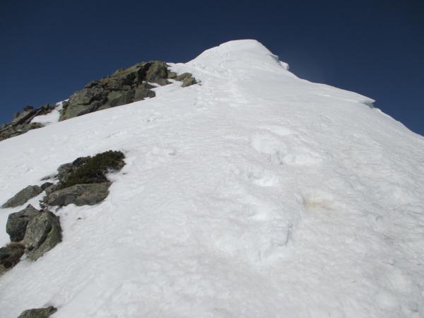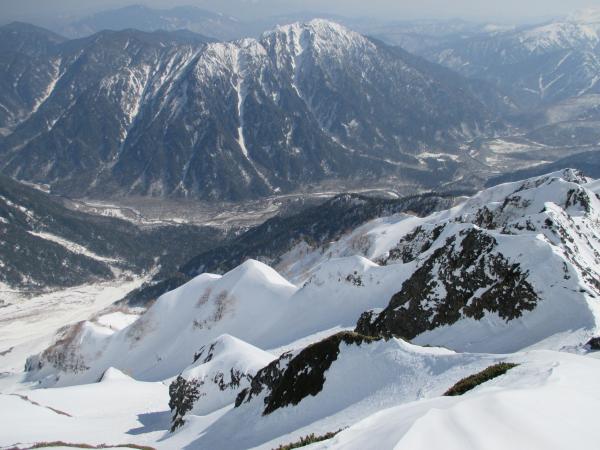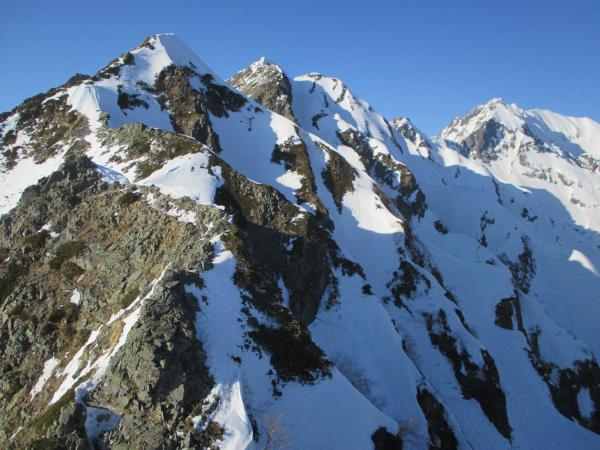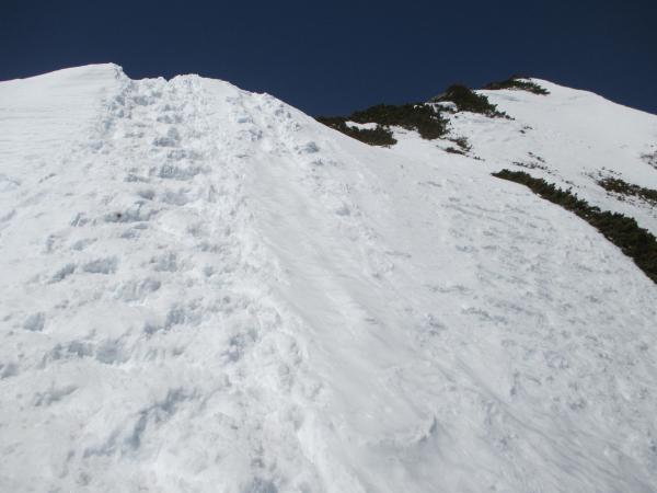 - 独標から西穂高岳頂上にかけて雪と岩の岩稜帯を歩くことになるため、確実なアイゼンワークが必要です。 また、長野県側に何箇所か雪庇が張り出している箇所があるため、長野県側に寄り過ぎないように注意する必要があります(西穂山荘で登山道の状況を確認してから行くと良いでしょう)。