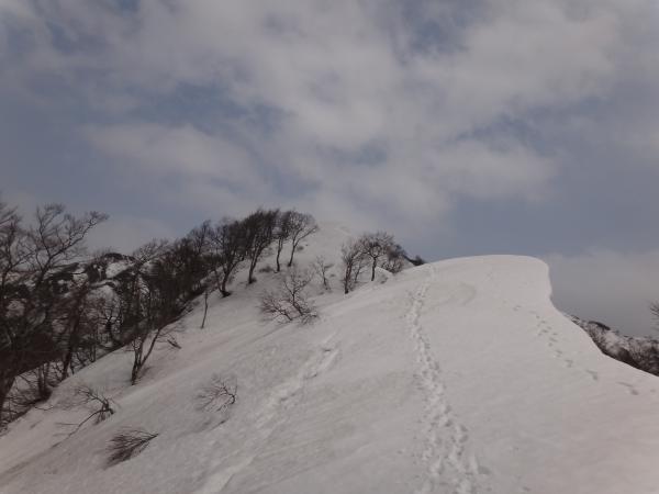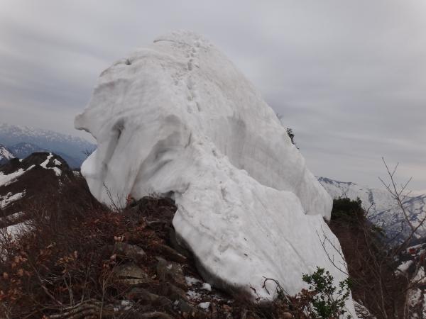 - 雪はほぼ腐っており落とし穴が所々に潜んでいました。山頂が近づくと締まってきますが、際どい痩せ尾根が続くので軽アイゼン必携です。