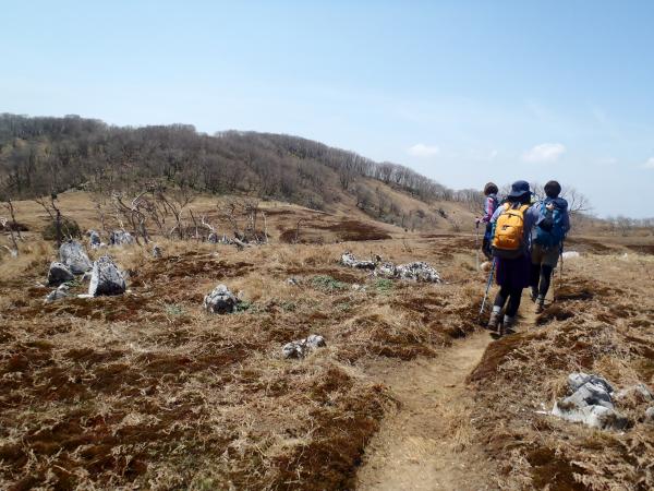 - 鞍掛トンネル西P ⇒25分⇒ 鞍掛峠 ⇒70分⇒ 鈴北岳 ⇒45分⇒ 御池岳 ⇒15分⇒ ボタンブチ ⇒15分⇒ 御池岳 ⇒40分⇒ 鈴北岳 ⇒60分⇒ 鞍掛トンネル西P