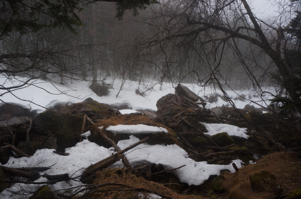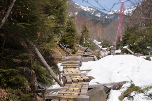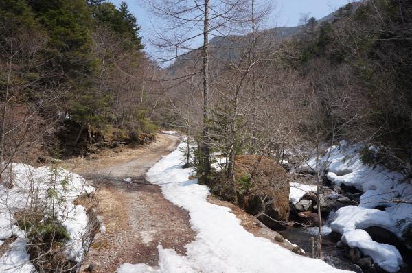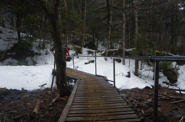 - ・北沢は一部雪がとけていますが(橋の上など)、まだ積雪あります。早朝で雪が凍っている時間以外は、アイゼンなしでも赤岳鉱泉まで問題なさそうです。
