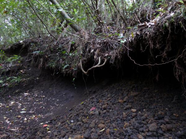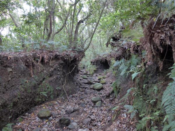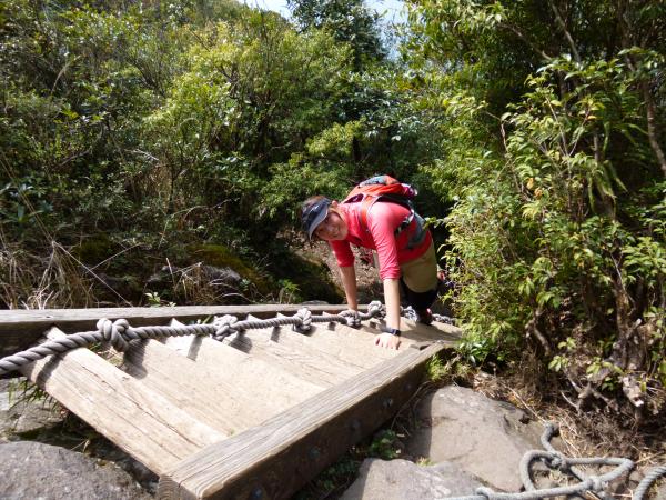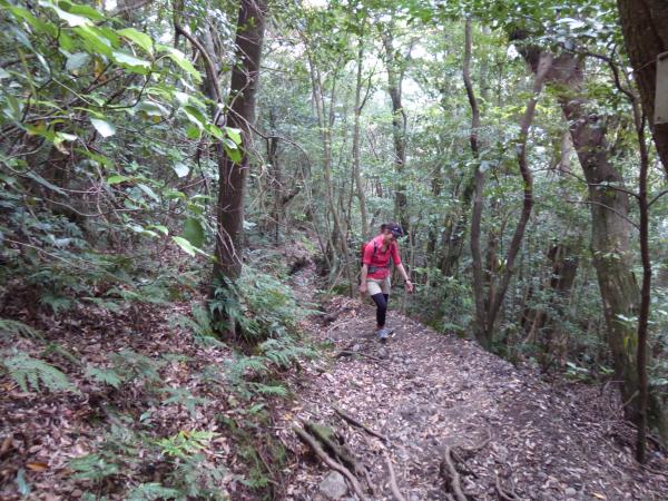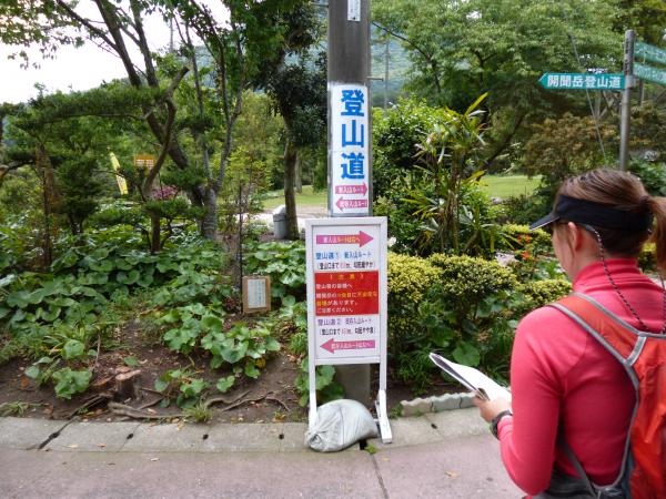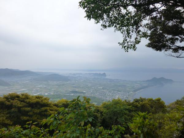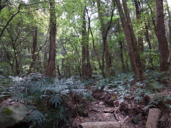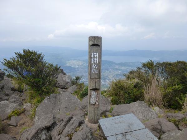 - 登山口の『かいもん山麓ふれあい公園』は駐車場、トイレ、売店などが完備されたレクリエーション施設。キャンプ場やゴーカート場もあります。道標に従って公園内を抜けていくと登山口(二合目)へ。ここから延々と鬱蒼とした樹林帯が続きます。苔むした道は屋久島のよう。小さい溶岩だらけの道で今回も“走れる”様子はなし((+_+)) 五合目に展望台があり、東側の薩摩半島、長崎鼻方面の眺望がひらけますが、再び樹林帯へ。七合目からときどき南から南西方面(東シナ海方面)が覗けますが、それも「ときどき」。基本的には樹林帯のなかで太陽が拝めません。九合目あたりからようやく眺望がひらけ、西から北西方面が。ロープが取り付けられた急階段を登ると山頂はもうすぐ。山頂は北西から北方面は眺望がよいですが、南方面は木に遮られて眺望なし。