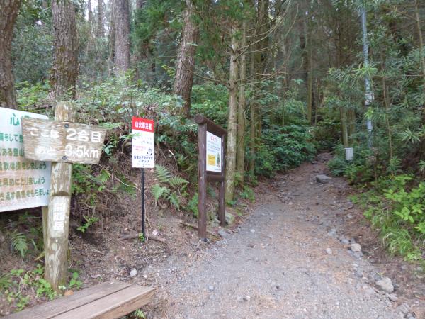 - かいもん山麓ふれあい公園(5分)登山口二合目(10分)二合目半(30分)五合目(25分)七合目(20分)仙人洞(30分)山頂(20分)七合目(10分)五合目(15分)二合目(10分)かいもん山麓ふれあい公園