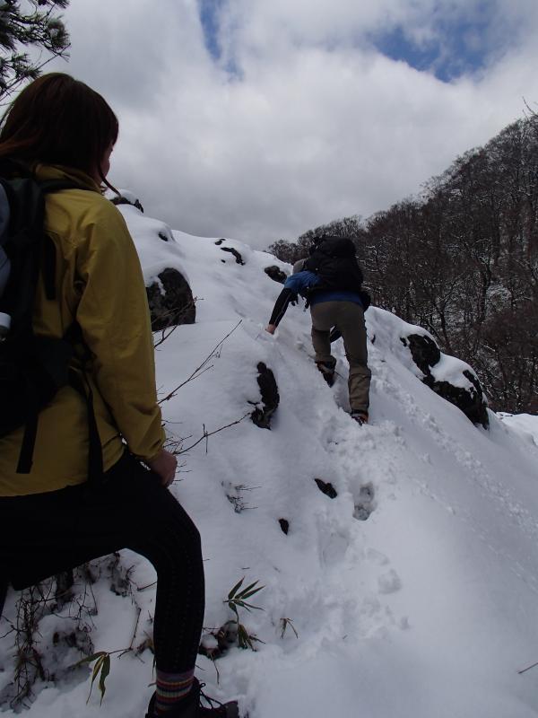 こんなにも雪が残っているとは想定しておらず、初心者も同行していたため、東権現からは鎖場もあるため少々危険と判断し東権現で折り返すことにしました。展望台で若狭湾を眺めながら昼食をとり下山しました。思いのほか寒かったので、ダウンやフリースは必須でした。