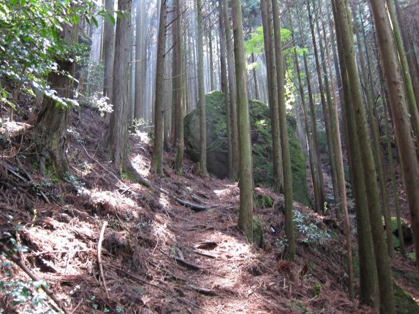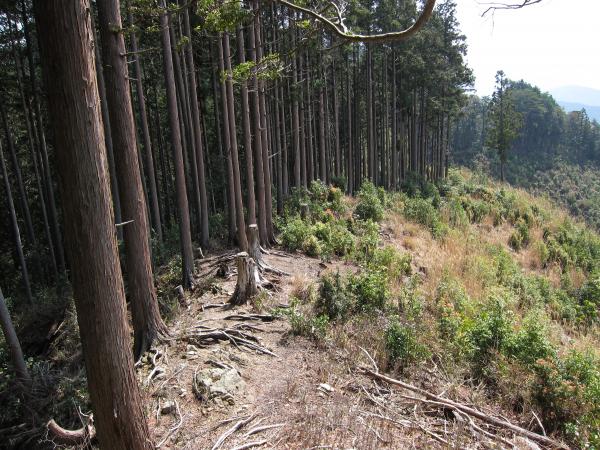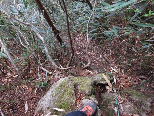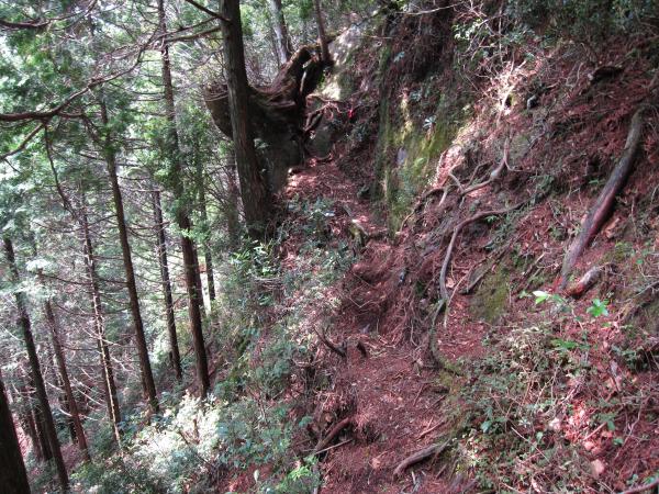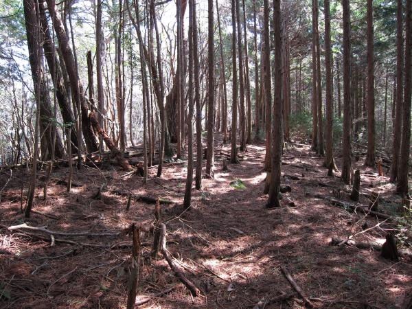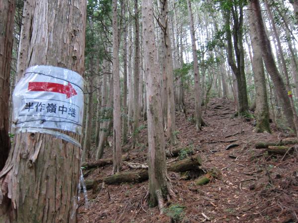 - 半作峠からの尾根道は比較的なだらかだが、三ツ森山、半作嶺ともにピーク手前は結構な急坂です。