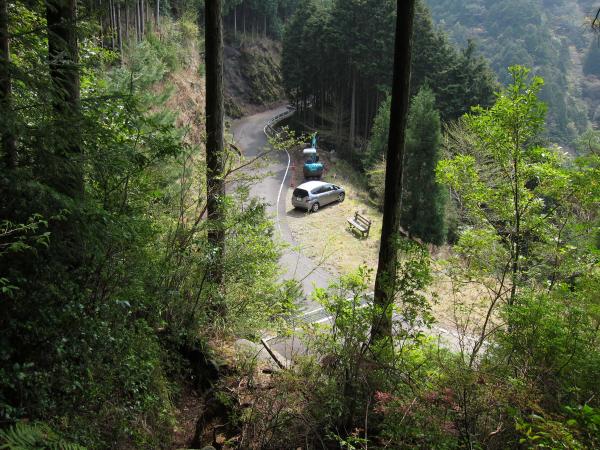 アクセスは県道219号から熊野下川林道に入り、半作峠北登山口へ。熊野下川トンネル手前に5台ほど駐車スペースとベンチがあります。