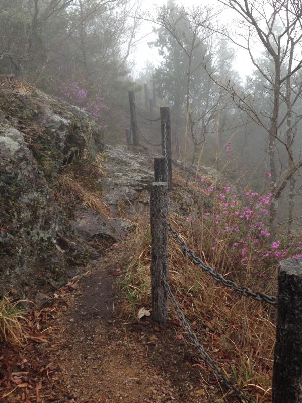 高梁市にある天神山は標高がなんと777mで、とっても縁起の良い山です。中国自然歩道になっているので、道は整備されており、迷わずに登っていけました。登山道はやや苔がはえており、階段も多いので、ソールに溝がしっかりと残った登山靴がベストです。登山道には巨石や石像なども多く歴史を感じます。天神山山頂からの景色は良くありませんが、今回は雨で視界が悪かったのですが、鈴振岳からは吉備高原や瀬戸内海、北は大山まで見えます。