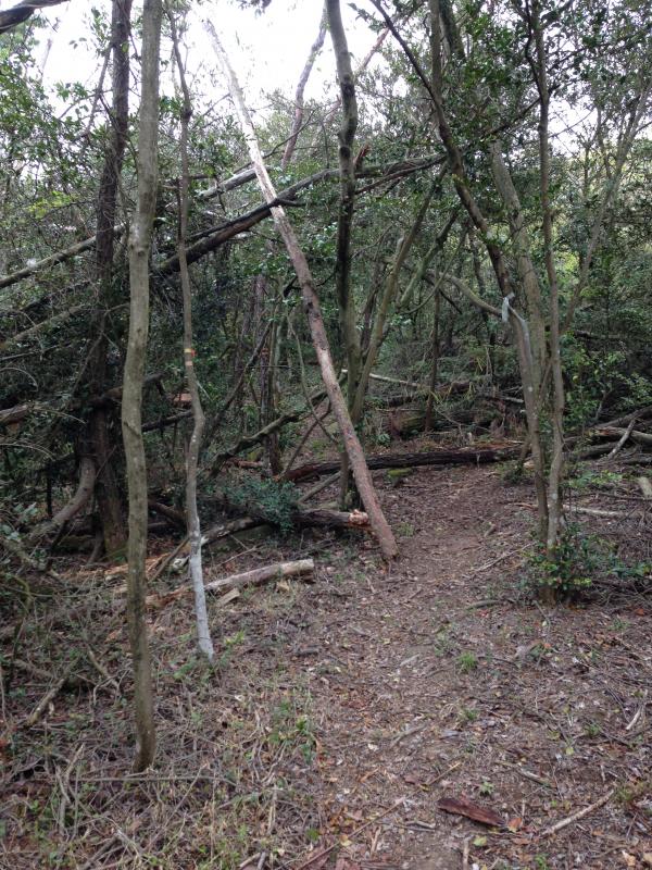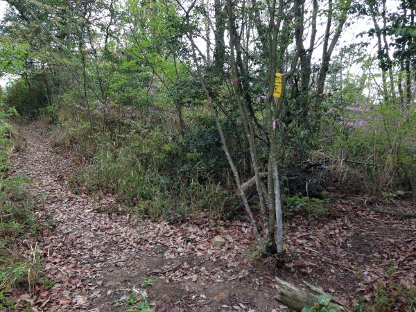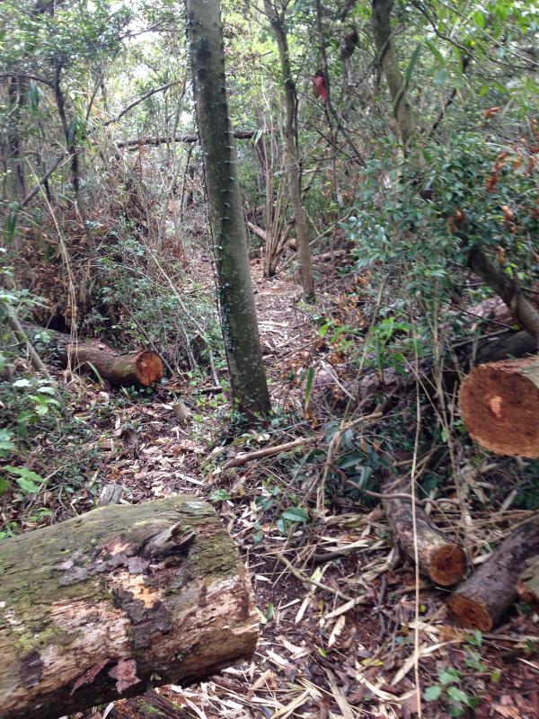 - 薮漕ぎはありませんが、樹木を切り倒した跡や落ち葉が濡れていて滑りやすかった