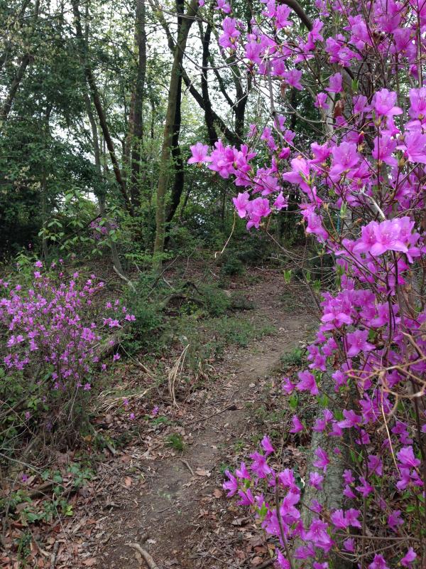 国立天文台から金毘羅宮を通って阿部山に行くつもりでしたが、天文台が休館日で通れなかったので地蔵岩方面から向かいました。開拓されているので薮漕ぎこそありませんでしたが、切り倒した木が多く転がっており、歩きにくい場所もありました。道には赤テープがこまめにあるのでわかりやすいのですが、周りが全く見えず、景色が変わらないので道迷いには注意が必要です。帰路は阿部晴明の碑を見に行こうと考えていたのですが、足が痛く断念し、そのまま天文台に戻りました。景色は天文台から以外道中ほとんど展望が開けないのが残念でした。