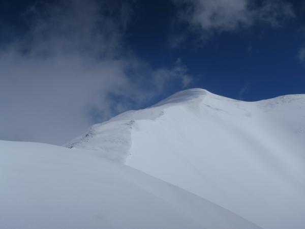 2895mピークとの鞍部辺りから大斜面滑降スタート。