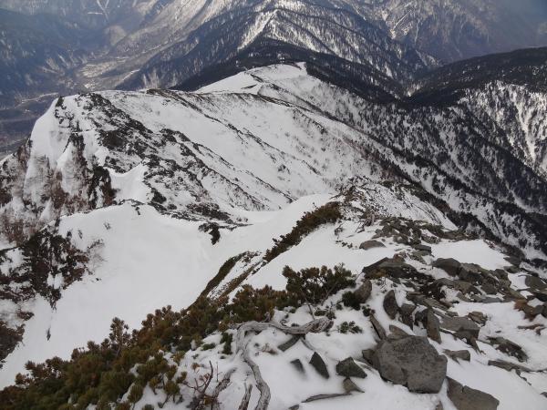 独標からの下降から緊張を伴い、ピラミッドピークを経て西穂高岳まで