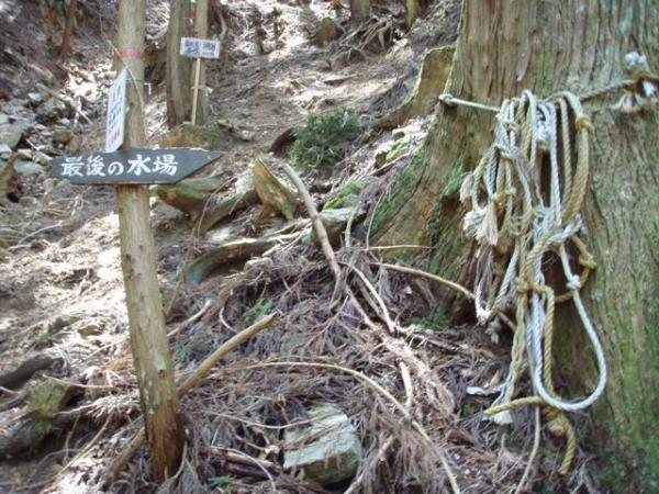 水場:油日岳の中腹に「最後の水場」がありますが、枯れていました