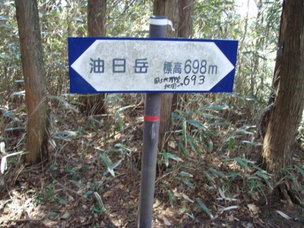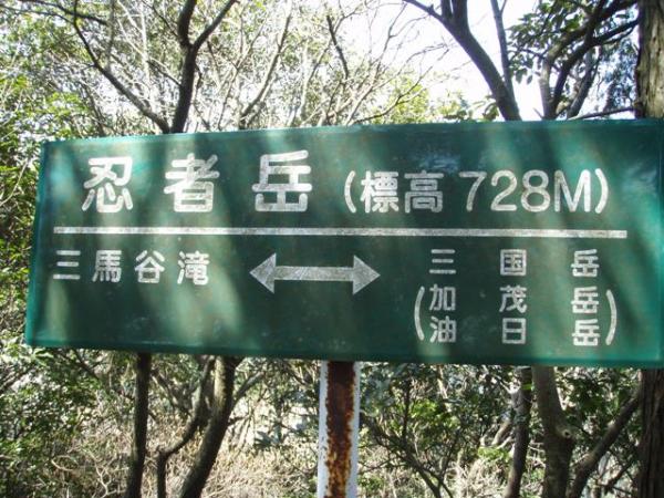 - 油日岳登山道入口~60分~油日岳・登山口~40分~油日岳(698m)~10分~加茂岳~10分~忍者岳(728m)~10分~三国岳(715m)~60分~油日岳・登山口~60分~油日岳登山道入口
