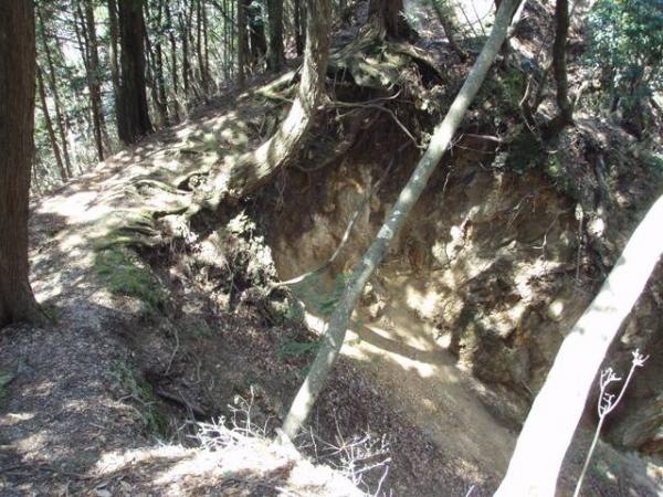 分岐に戻り、標識に従って進むとかなり急な登りになり、このあとの尾根道は激しいアップダウンが繰り返されます。加茂岳から先は非常に狭い上に滑りやすい箇所のあるヤセ尾根があり、風がキツイと通過する時に落ちそうでドキドキします。さすがは修験者や甲賀忍者の故郷。ここで修行したら、間違いなく心身共に強くなれます。
