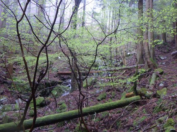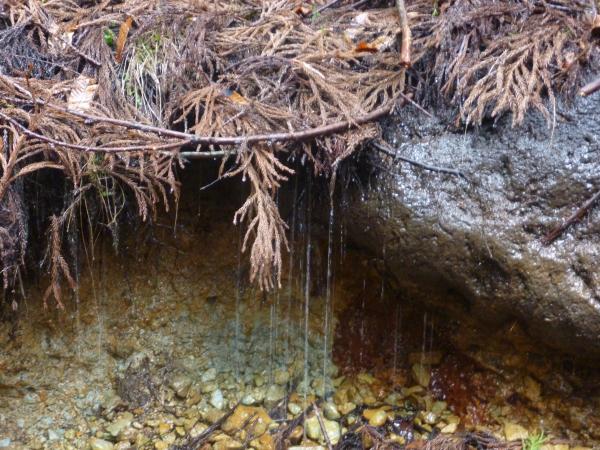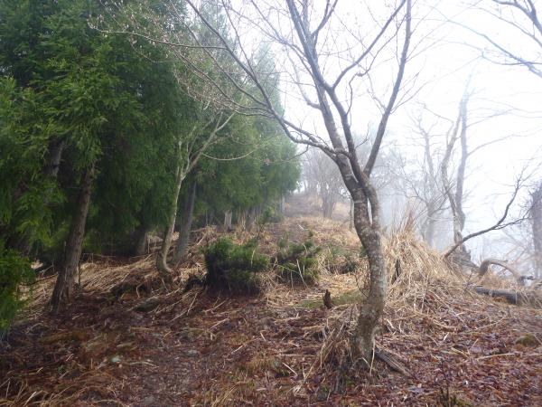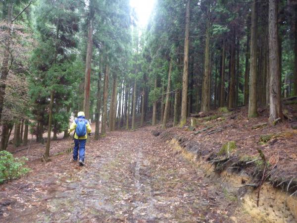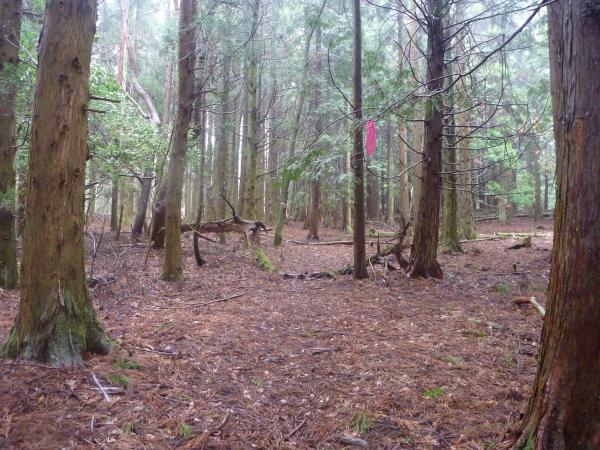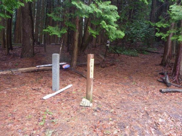 - 杉植林で伐採されている沢沿いの斜面で登山道が少し荒れているのと、落ち葉や粘土質の土壌で非常に滑り易い所もあり、降雨時うや直後は注意が必要です。