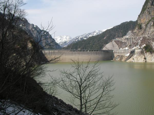 - 室堂(1時間10分)一ノ越(滑降1時間)黒部湖(歩行1時間20分)黒部ダム