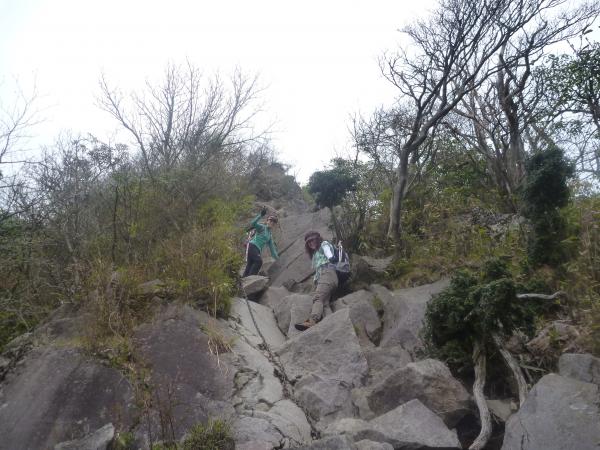 今回のコースの醍醐味は材木岩から中岳への登りでしょうか。材木岩への登りも少々キツく、行きが乱れてきたところで岩場出現。鎖も設置されて少々手強い感じ。でも展望が開け風が吹き抜け気持ちいい。ひと踏ん張り登れば中岳山頂。ここで失敗、、、看板が山頂より手前にあるのでそこで左に進み南岳を目指し歩いてみたもののなんか足場が悪すぎる。とってもザレテいて滑りそう。怪しい???と、周りを見回してみると少し離れたところにも登山道らしきものが見える。間違えた?と引き返し中岳山頂の道標までしっかりあがるとその左にきちんとした登山道があるではないか!!やってしまいました(汗)アルバイトさんをしっかりエスコート(?)しているつもりが、、、あぁ、失敗。