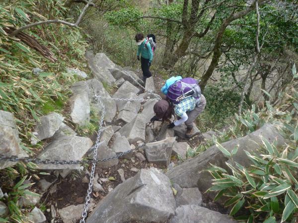 - 下宮<40分>梵字岩<45分>鬼杉<90分>南岳<10分>中岳<80分>下宮