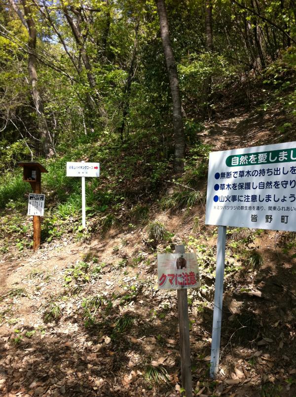 - 皆野駅(35分)登山道入り口(100分)風戸分岐(30分)破風山(10分)礼立峠(30分)大前山(20分)野巻方面分岐(60分)椋神社(40分)皆野駅