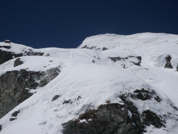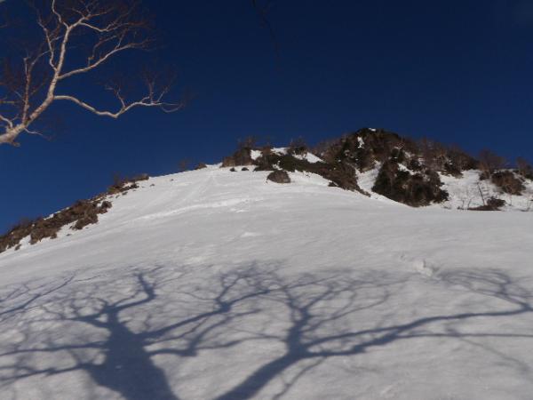 雪が多く、頂上直下の岩場はあまり出ていない。
