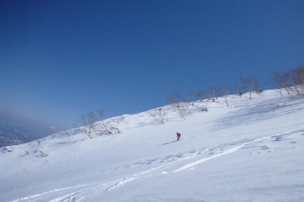 快晴の中、白馬バックカントリーの人気コースを滑ってきました。