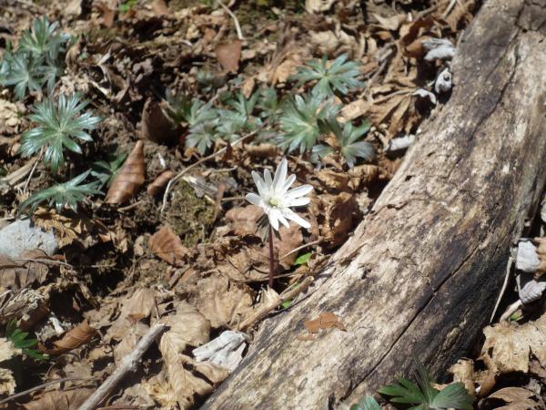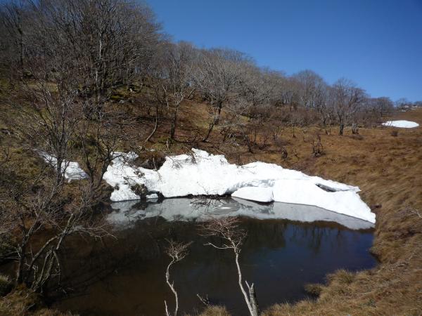 帰りに鈴ヶ岳をめざしましたが、途中で道を間違え通ってきた元池の近くまで歩いていました…。副産物としては満開の福寿草にまたまた群生で出会えました。