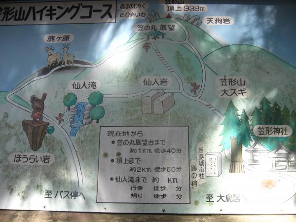 - 大鳥居45分笠形神社30分笠ヶ丸20分山頂40分大鳥居