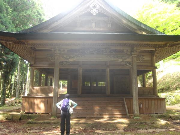 大鳥居の手前で、狸?小熊?が1匹。私たちの声に反応して山へ逃げていく後姿を眺めていたのですが、