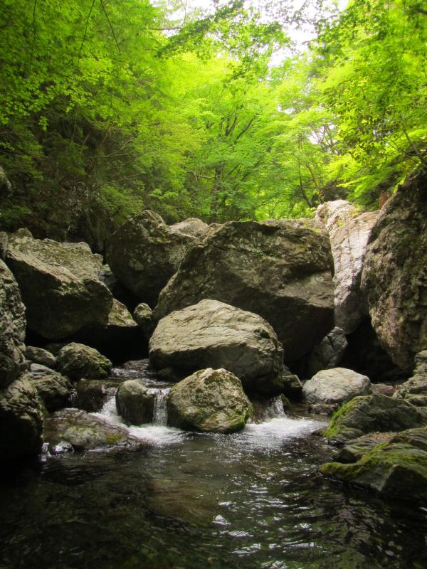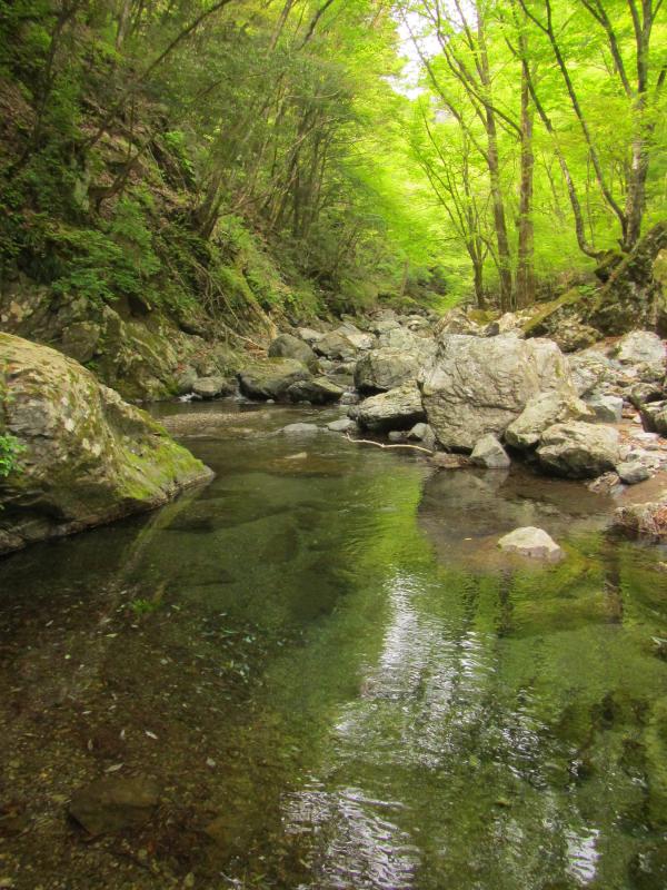 もっと大きな谷をイメージしていましたが、眩い新緑と清流の美しさが醸し出す素晴らしい渓趣が迎えてくれました。