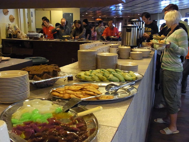 一斉に人も集まるので、食事にありつくまで長い列を待たなければならなかった。