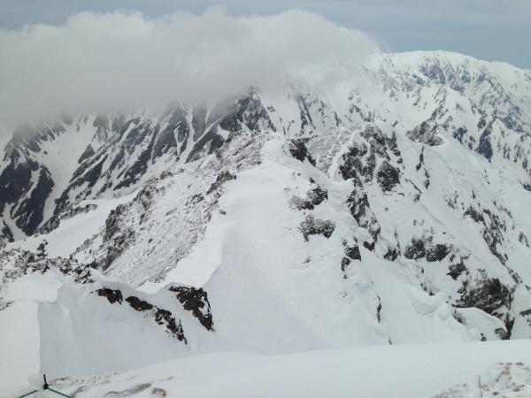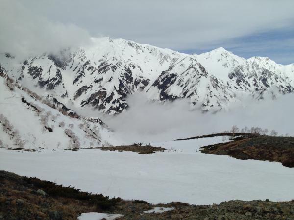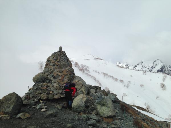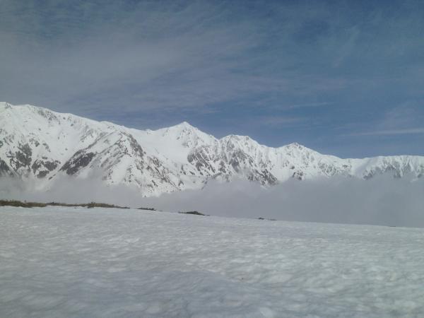 下ノ樺を過ぎたあたりから快調に進んでいきます(快調に進みすぎて同行者に叱られました)。この辺からガスや雲も晴れて、白馬三山から不帰東面のパノラマが迫力。来てよかった! 丸山手前から主稜線までは風が強く顔が痛くなるほど。同行者はバラクラバで完全防備。その後は風も収まり下山の頃にはほぼ無風に。