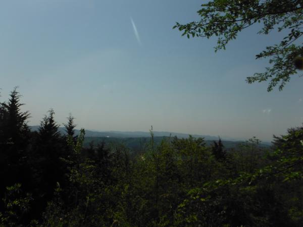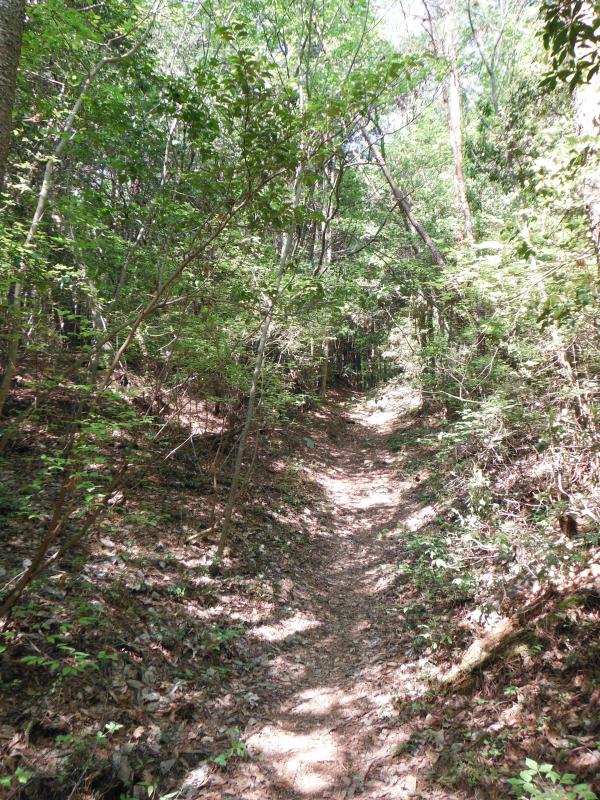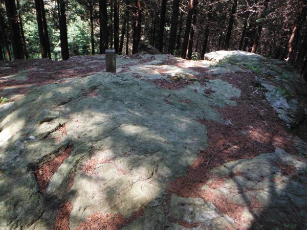 登山口から赤松林や雑木林の緩やかな道が続き、ほとんど急な斜面はありません。車道に合流後も山頂までは歩きやすいです。
