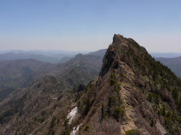天狗岳への尾根は切立った岩場です、岩が濡れている時や強風時は避けた方が無難です。